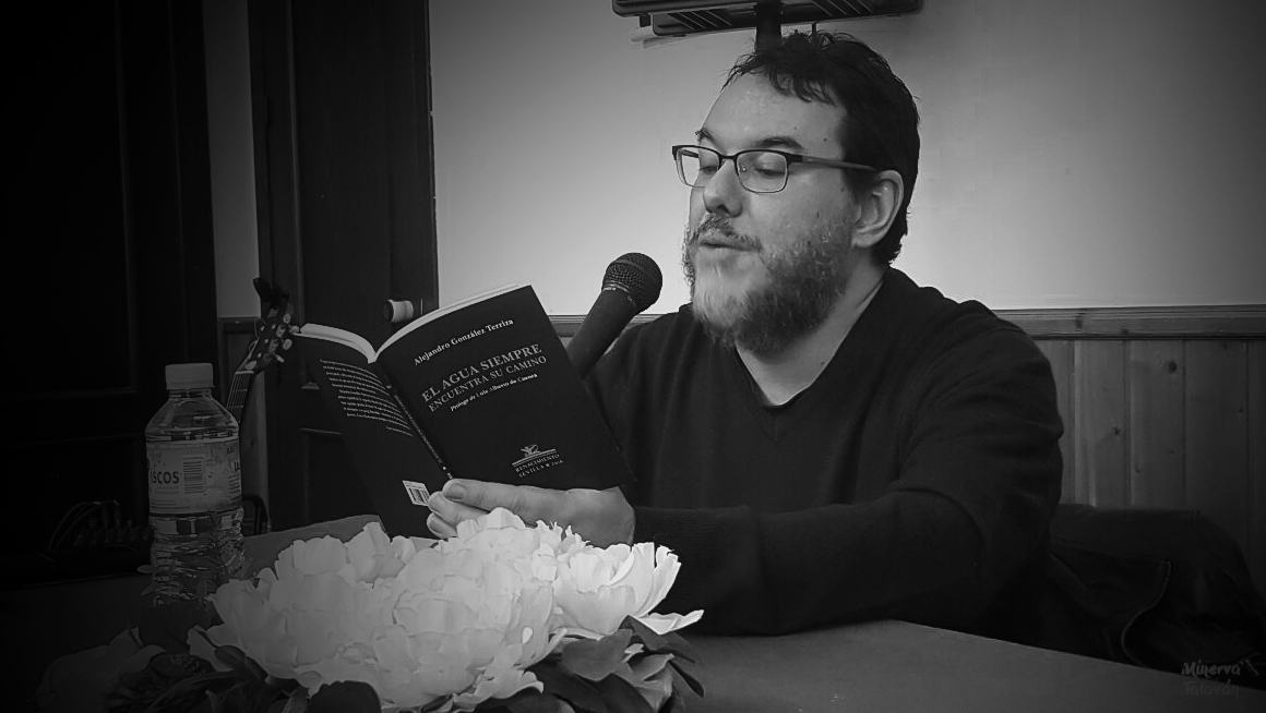 | Alejandro durante la lectura de poemas. Foto de Minerva Talaván. |
